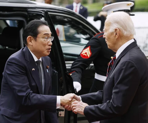 La reunión, que forma parte de la primera visita oficial de un líder japonés a Estados Unidos en casi una década, se produce en un momento crítico de la relación bilateral. Los países buscan intensificar la cooperación en materia de seguridad en la región del Indo-Pacífico a medida que China adopta una postura cada vez más asertiva sobre las aguas en disputa en el Mar de China Meridional.