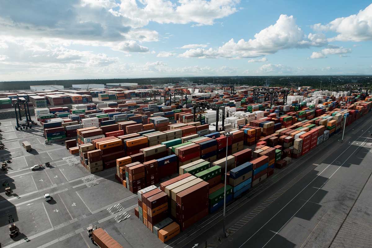 Cientos de camiones entran y salen cada día cargados de contenedores de distintos tamaños, colores y productos por el puerto de Caucedo. De acuerdo con Badía, cada semana transitan alrededor de 20,000 contenedores.