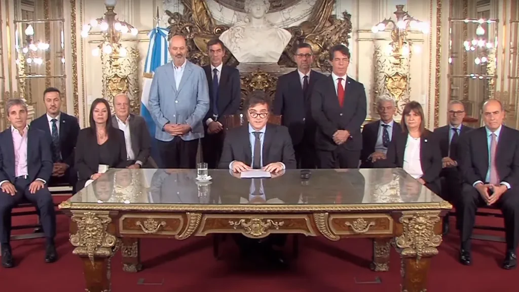 El presidente argentino, que se ha descrito como un anarcocapitalista, enumeró 30 medidas, entre las que se incluyen el anuncio de que buscará privatizar las empresas estatales, la eliminación de restricciones a aumentos de precios y la modificación del Código Civil y Comercial, y una reforma del Código Aduanero.
