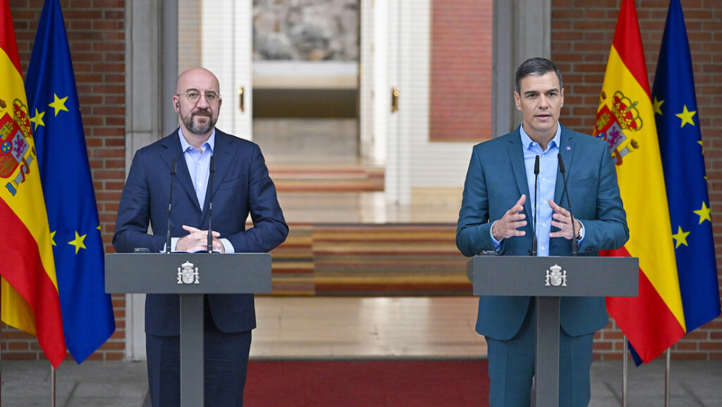 El presidente del Gobierno español se reunió el domingo 2 de julio con el titular del Consejo Europeo, Charles Michel, en el Palacio de la Moncloa, en Madrid, tras lo cual brindó una conferencia en la que afirmó que los ejes de su mandato estarán marcados por la reindustrialización, la transición ecológica, la justicia social y la unidad de los Veintisiete miembros del bloque regional. «Todo ellos en un contexto marcado por las consecuencias directas e indirectas» de la situación en Ucrania, aclaró.